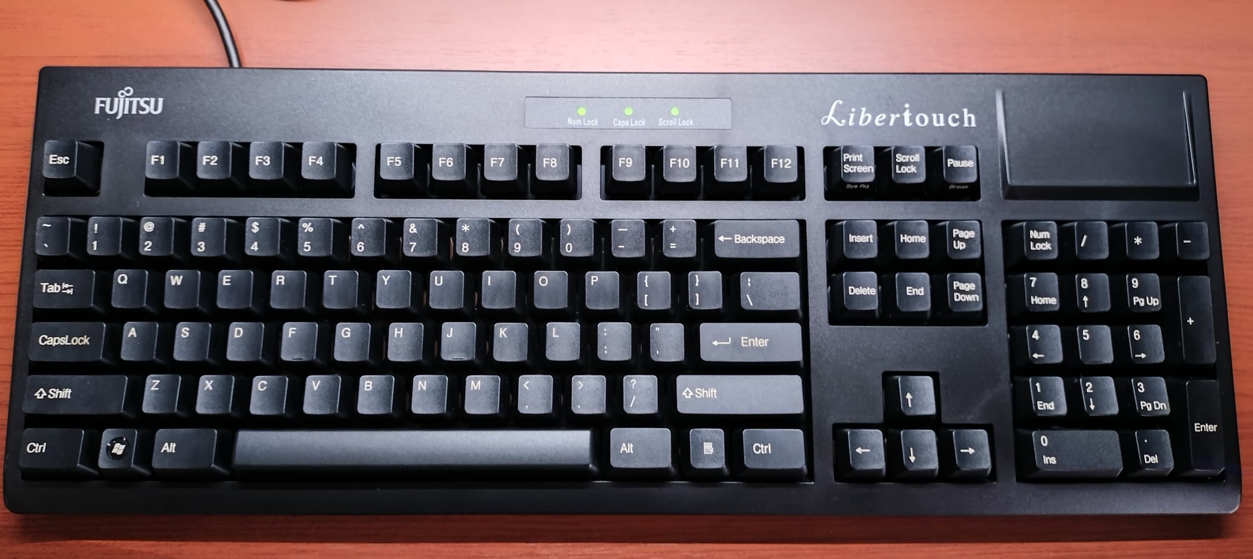 Fujitsu Component FKB8520-101/S1それまで主に富士通(株)PC付属品の生産を行なっていた富士通コンポーネントが、FMV-KB311を自社ブランド製品として販売したモデル。ケースや外観は黄変かと思いきや、地もアイボリーでした。キーキャップはオリジナルのPBTからレーザーマーキングのABS製ですが、当時(2004年~)は環境配慮の観点からインク不使用のレーザーが重用され始めた時期でもありました。その流れが後続モデルのキーキャップ仕様にも繋がったと思われますが、所有機ではPBT製に交換しています。 まったくの余談でですが、恐らくはこのS1こそが後のLibertouch開発/発売への導線となった、ある意味でのプロトタイプと捉えています。 |