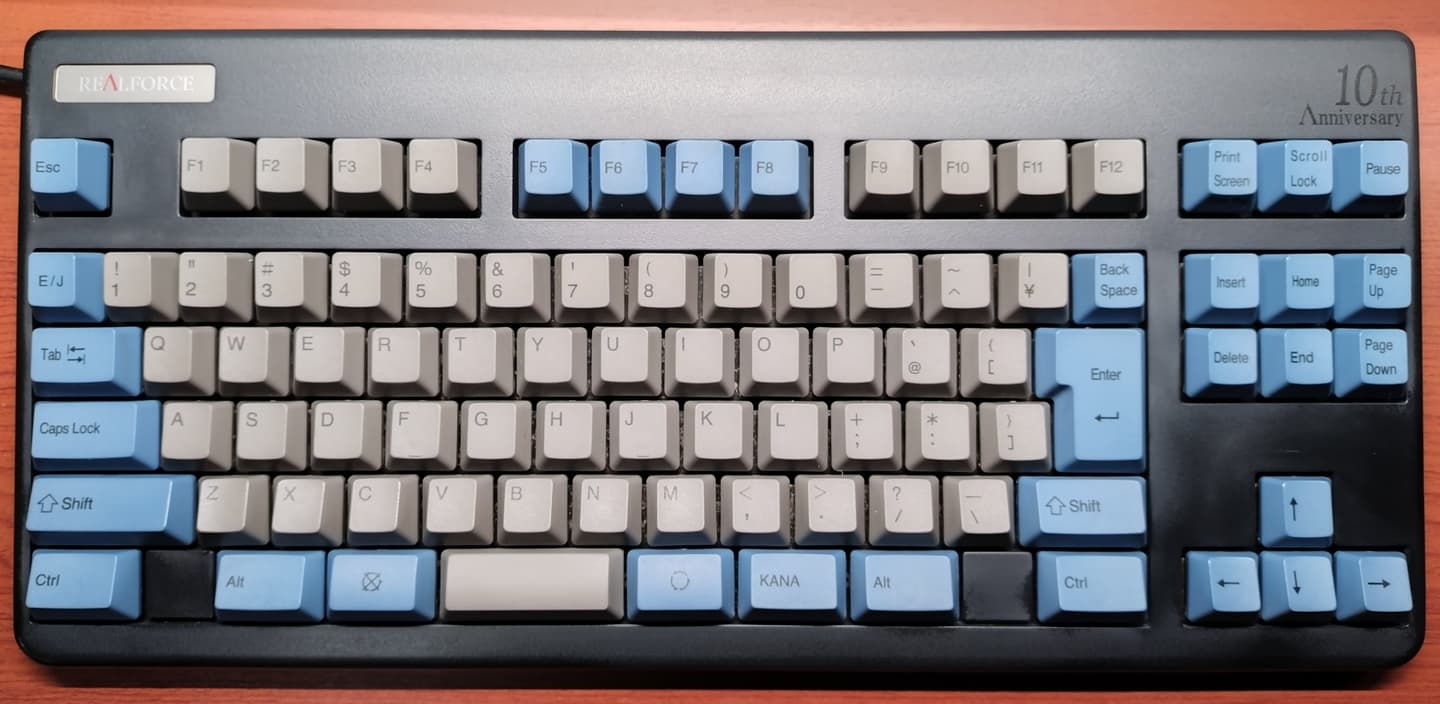Topre REALFORCE 89S 10th(ND31BS)REALFORCEの誕生10周年を記念して1,000台限定で復刻生産された、PS/2接続の89キーボード。発売当初はカラーリングも賛否両論だったようですが、最新モデル「RC1」シリーズを先取りしていたようにも思えます。ダークブルーのキーキャップをはじめ紫の静音プランジャーなとは、MX2A軸採用のLEOPOLD・FC750RBTにも少なからず本モデルの影響が見え隠れします。 |