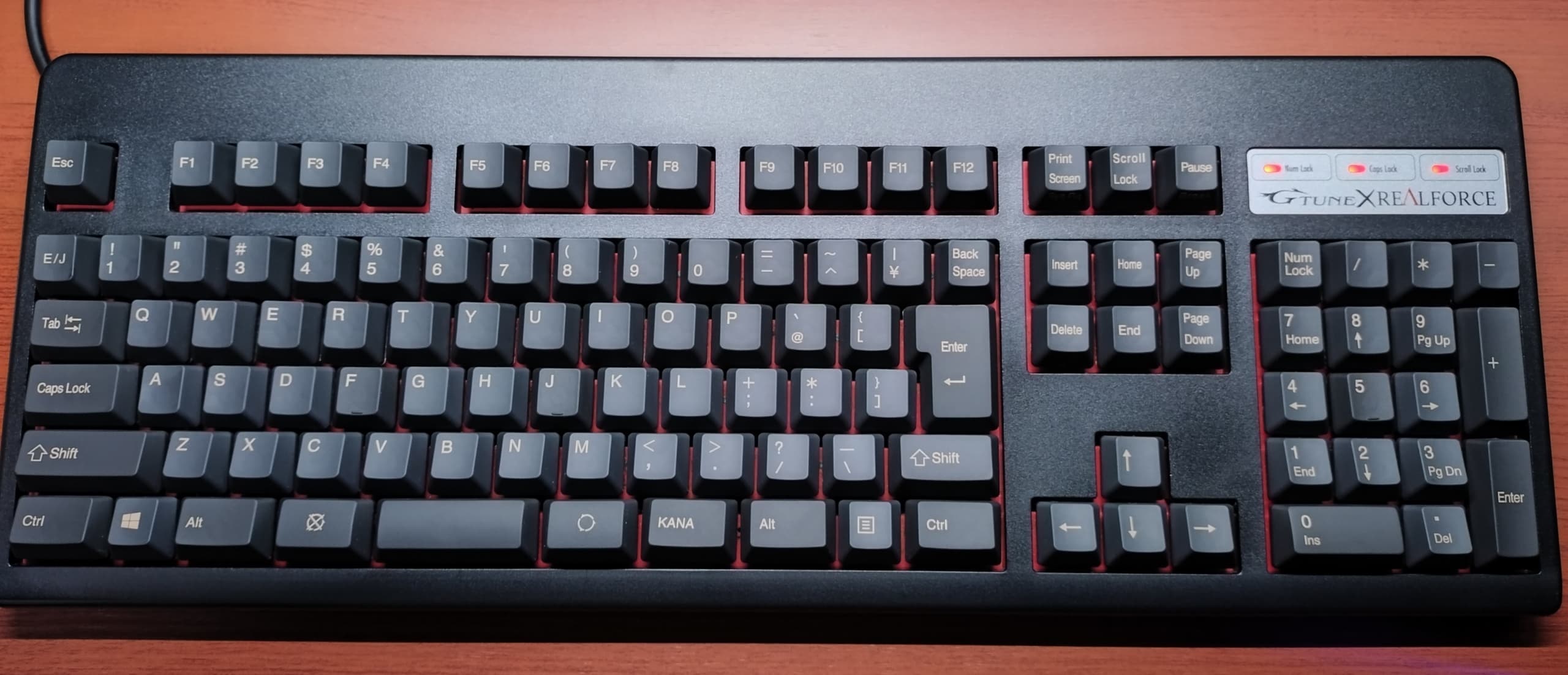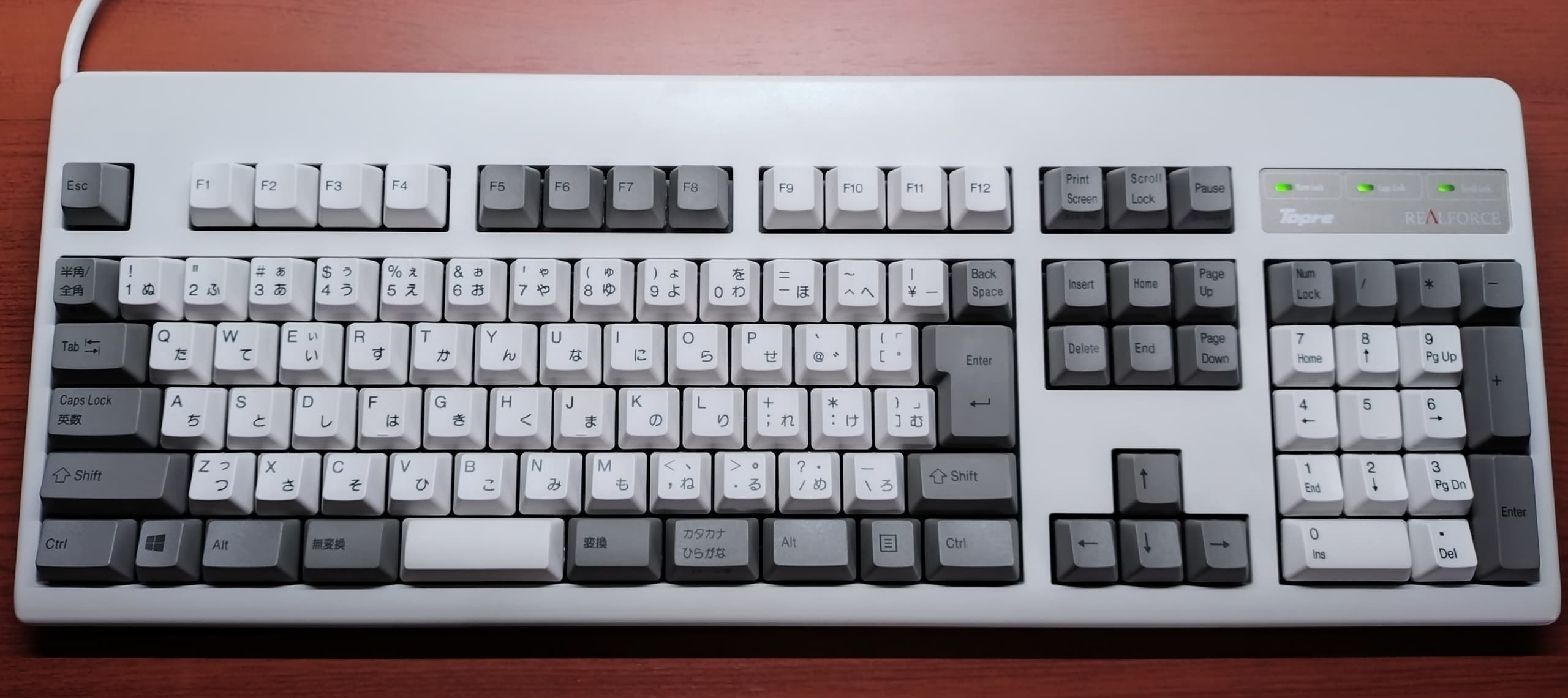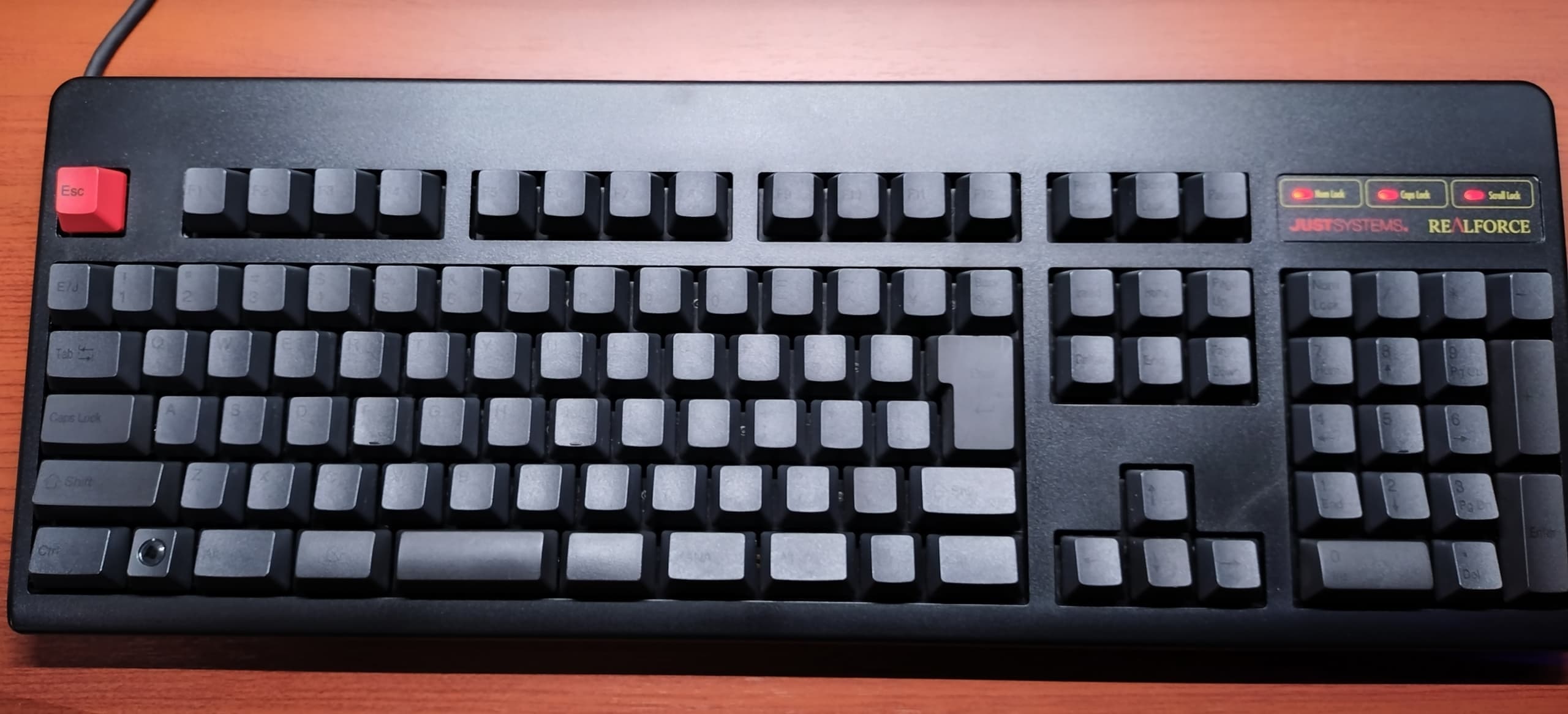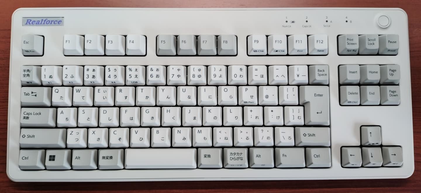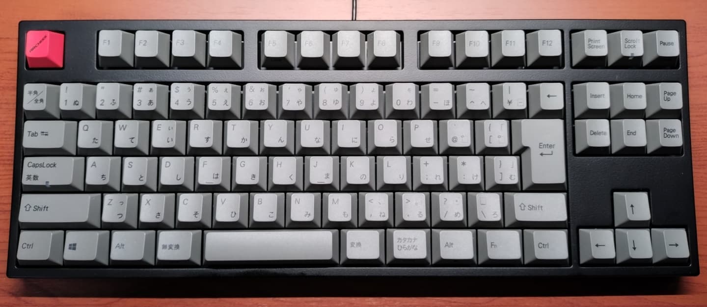 Topre REALFORCE 108UBK-JS(ZH0200)東プレとジャストシステムがタッグを組んだPJシリーズから、新たにZH~の型番と共に立ち上がった共同開発モデル。本モデルは先代ZH0100からのマイナーチェンジ的な1台で、キーキャップがABS製からかな有りの昇華印刷モデルに変更。かな有りの昇華印刷グレーはRealforceとしても初の採用になります。また従来はEscのみだった赤いキーがEnter他にも拡大、所有欲が一層くすぐられるようになりました。一方でグレーの昇華印刷は視認性に欠けるため、所有機ではメインキー他をホワイト系に交換。見映えよりも実用性を重視しています(これはこれで好き)。 |