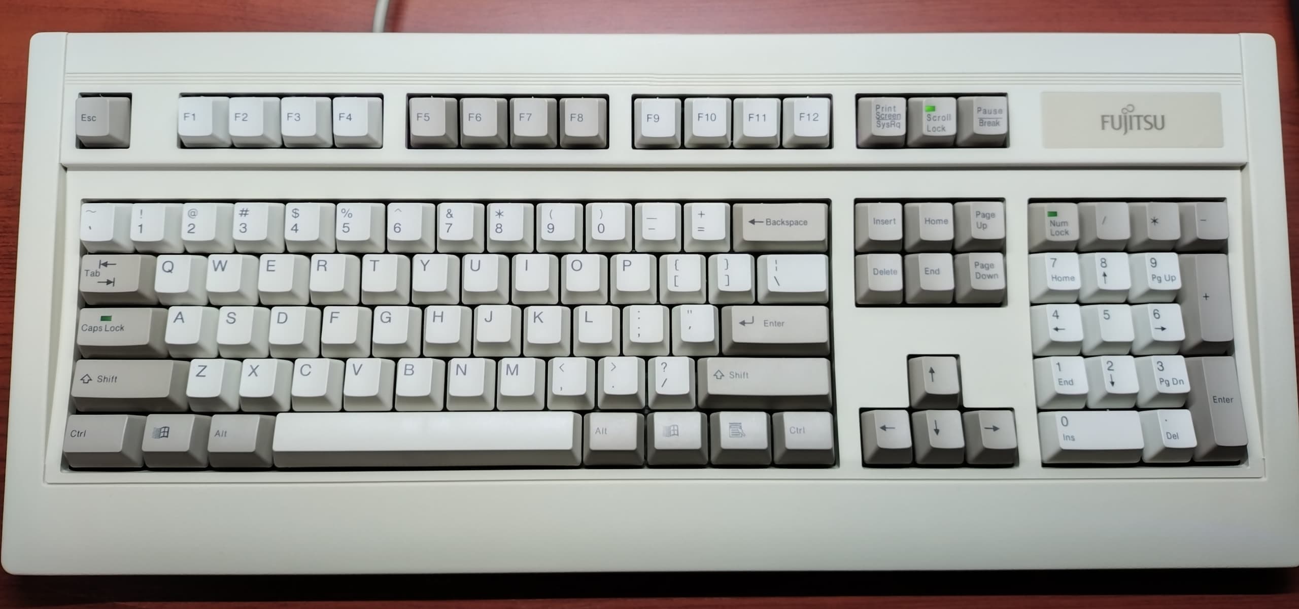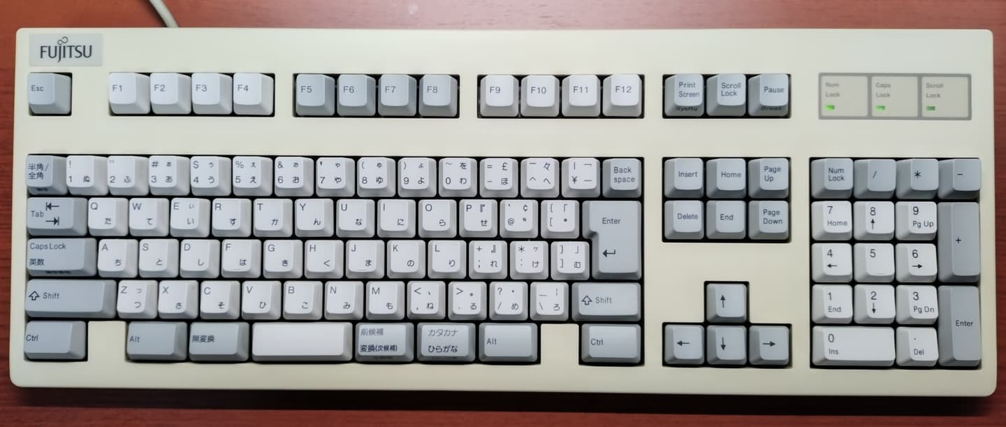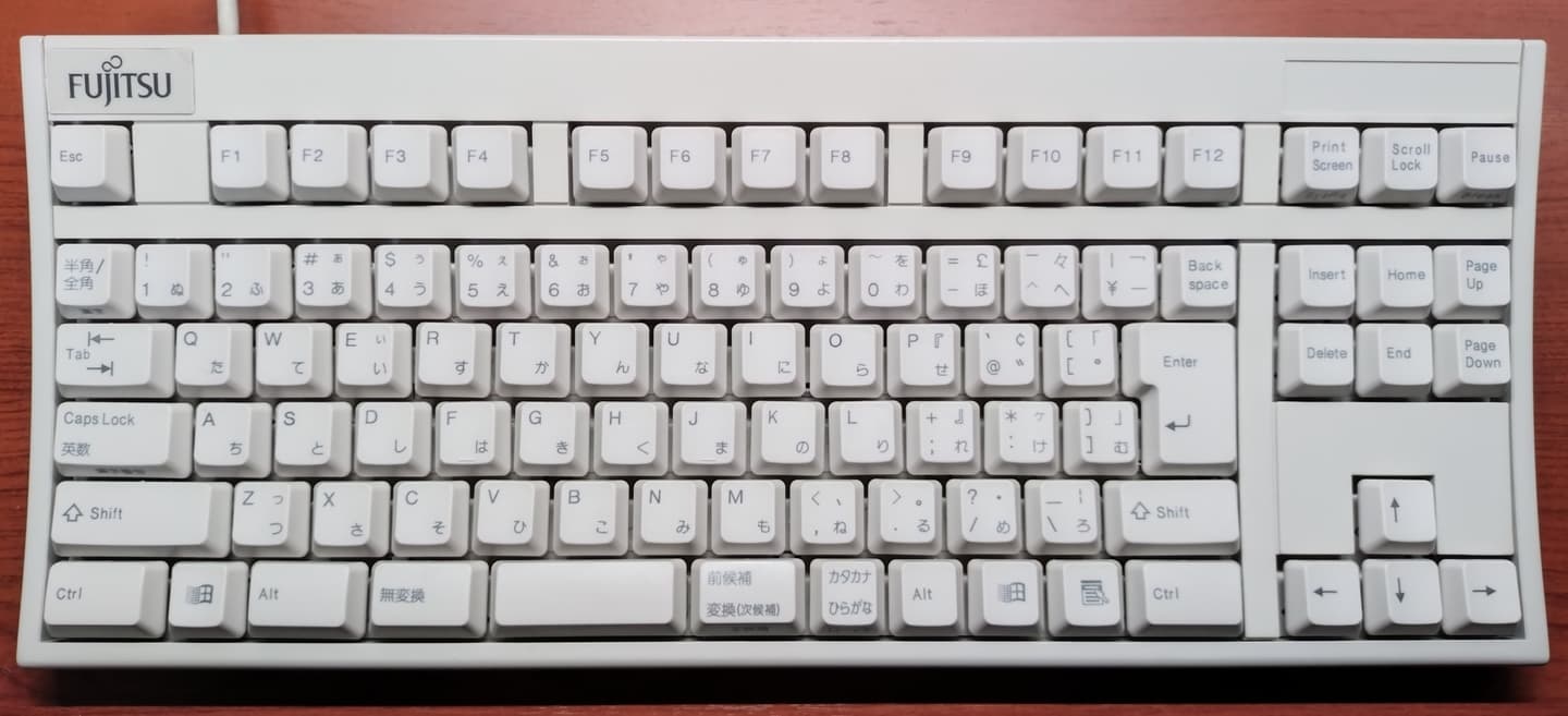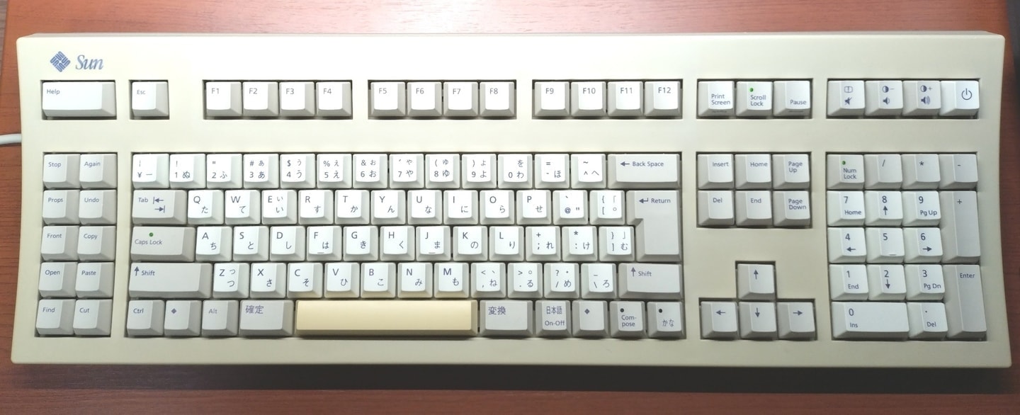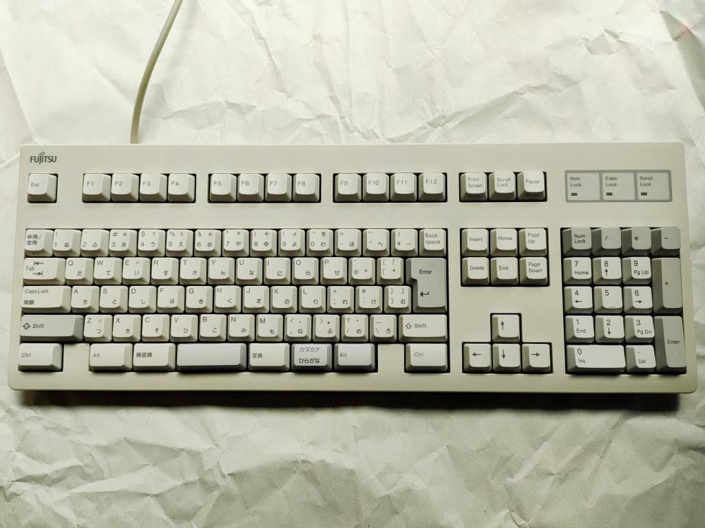 Plat' Home FKB8579-JISUNIX配列/JIS配列ともにこのFKB8579は富士通高見澤コンポーネント(現・FCLコンポーネント)の製造、つまり初代HHKB(PD-KB01/PD-KB02)の姉妹機です。HHKBと同様にキー数を極限まで絞り込んだこともあり操作には慣れを要しますが、方向キーが独立しているのは筆者好みで有難いです。キーキャップはUNIX配列と同様にSunのType5~7と互換性があり、こちらはType5cのPBTキャップに入れ替えています。 |