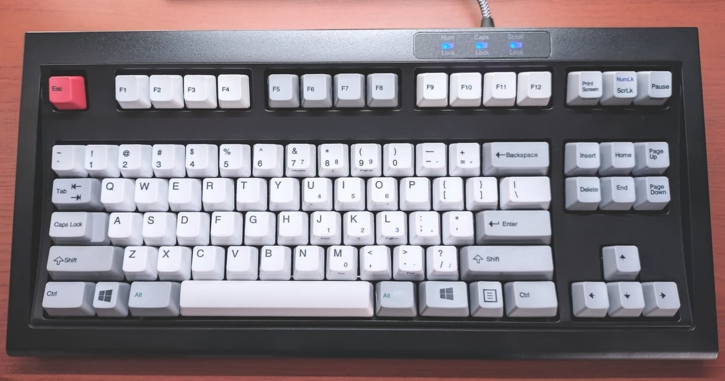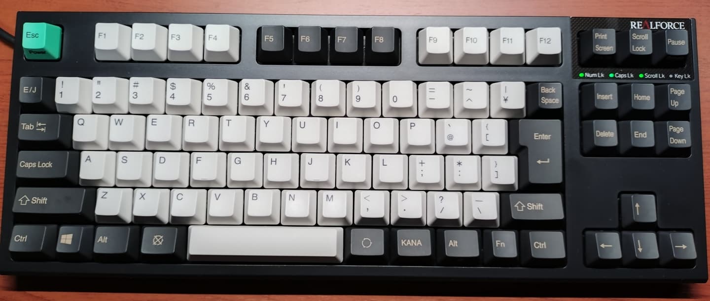 Topre REALFORCE PFU Limited Edition(Black)REALFORCEの東プレと、HHKBのPFUがタッグを組んだ夢のモデル、それがこのPFU Limited Editionです。HHKBのミニマルなキー配列があまり得意でない筆者には、HHKBのテンキーレス版として重宝しています。黒ベースにホワイト系アルファベットキーの組み合わせはKeychronの一連デザインを意識していますが、2025年現在でも十分通用します。東プレさんには、ぜひこのデザインで出していただきたいです。 |