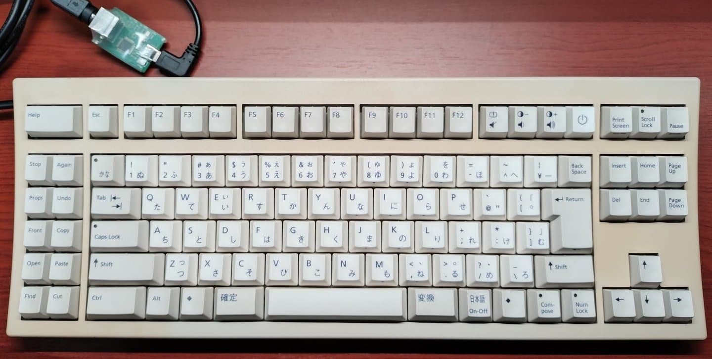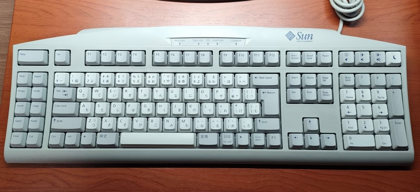 Sun Microsystems Compact 1大柄なボディが多いSun用キーボードにおいて、その名の通り最もコンパクトな一台が「Compact 1」です。Type5をそのままテンキーレスにしたようなレイアウトですが、Type5以降とはプロトコルが違うのかCTC-SP製のコンバーターを介しても動作させることが出来ません。諦めかけていたところ、GeekHackで見つけた「HASU」さんのMiniDIN-USBコンバーターで見事に動作させることができました。