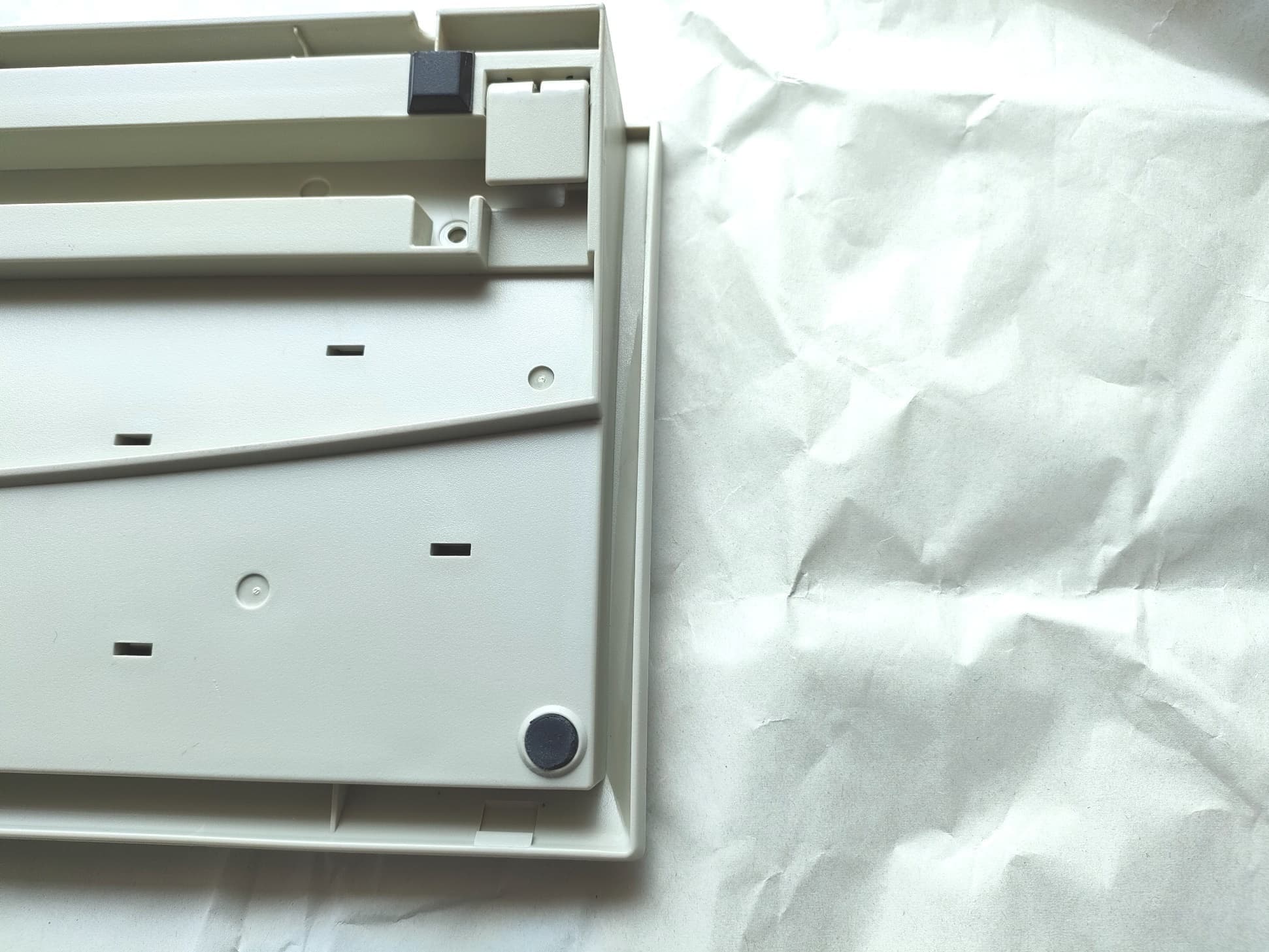 また同時代のライバル機は、SGIなど一部のBigfoot、そしてModel MなどがこぞってキーキャップにPBTを採用しています。その中でもPEERLESSのキーキャップはもっとも表面のキメが細かく、他のモデルが木綿だとしたらPEERLESSのそれは「絹ごし」を思わせます。