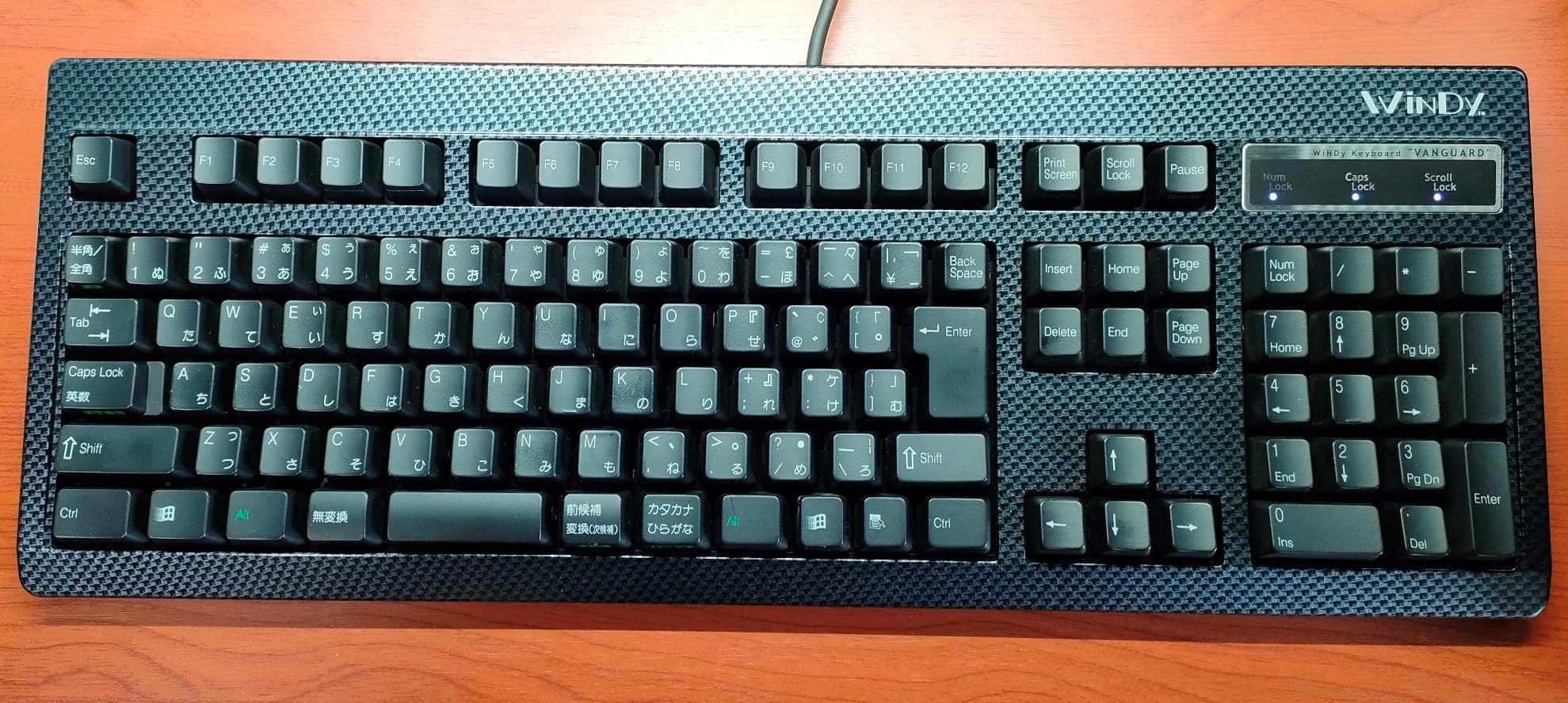WiNDY VANGUARD V101(Carbon)alfeelと同じ星野金属工業がリリースした、NMBのRT6656TWJPをベースにケースの模様替えを行なったキーボード。タッチはNMBそのもので、往年のラバードーム式メンブレンキーボードをお洒落にアレンジした趣きです。シリーズ末期にリリースされたカーボン柄のケースは黒いキーキャップにもマッチし、打鍵の軽快さに加えて所有欲も満たしてくれます。 |