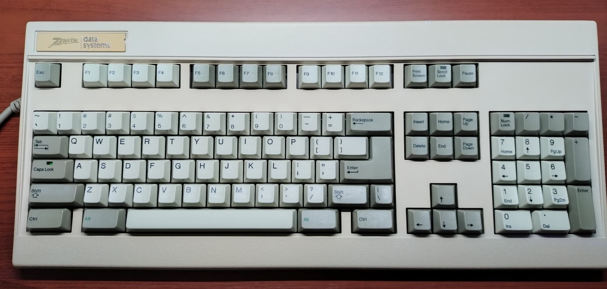 Zenith ZKB-22024年現在では殆ど見かけることのなくなった、ALPS緑軸搭載のキーボード。ロープロファイル気味のキートップと緑軸のリニア特性、押下のたびに鳴るブザーのトリプル相乗効果で唯一無二の打鍵感を楽しめます。ケースボトムには鉄板を採用し、コレクションの中では Northgate OmnikeyやIBMのModel M、Olivetti ANK-25と並ぶ「ヘビー級四天王」に君臨しています。 |