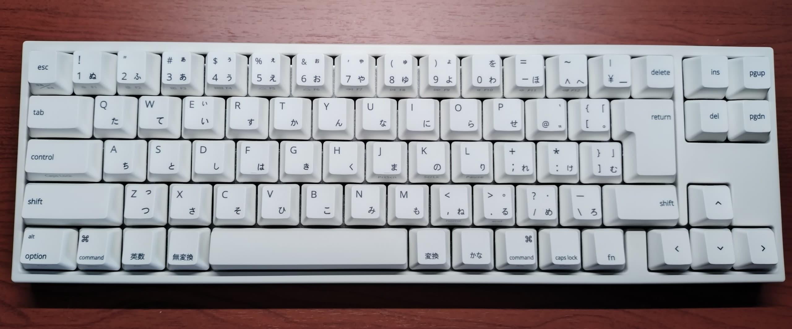 ふもコレ キーボード スタンダード「ふもっふのおみせ」を手掛けるフェルマーが企画し、中国・深圳のVarmiloが製造を手掛ける、すっきりした外観のキーボード。標準109+マルチメディア4の計113キーは最前面のR1列に若干くせがあるものの、木目調の表面加工を施したケース外観や1.5mm厚のPBTキーキャップ、大人の使用に堪える白色LEDなどは中国製キーボードの中でも白眉と呼ぶにふさわしい品質を誇ります。手持ちの白色系キーボードではMajestouch HAKUA、RealForce R3SA21と並ぶ「ホワイト三傑」です。 |