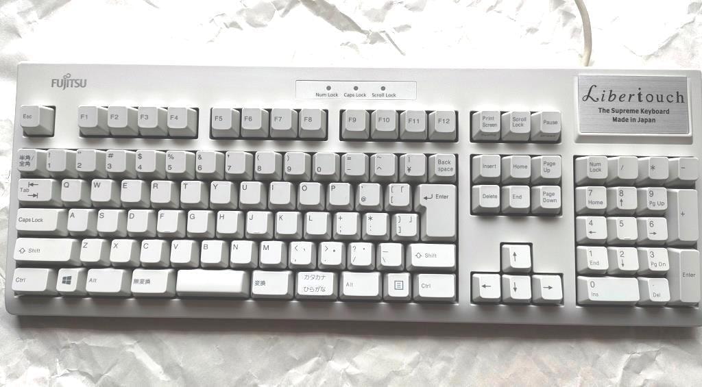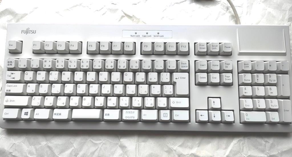 初代4モデルのうちの一つで、FKB85xxの型番が示すとおりFKB8520(FMV-KB311)の実質的な後継モデル。これまで発売された全8製品中、親指シフトモデルと並ぶ希少モデルかも。JIS配列にはないCapsLockとCtrlの入替用キーキャップが付属する(ただし入替にはレジストリ変更が必要)。