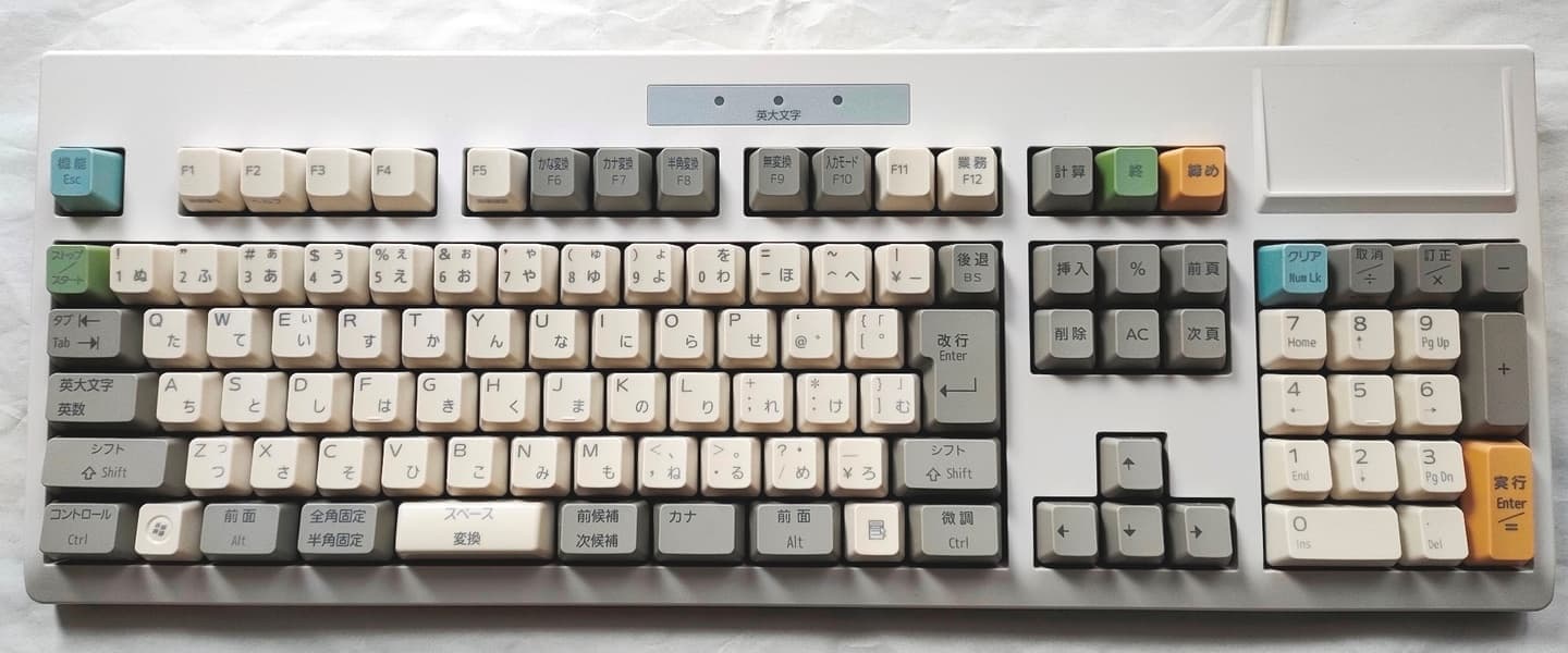 初代4モデルのうちの一つで、001/WのJIS配列モデル。052/Bと並んでUsed市場でも比較的見つけやすい一台だが、白いABS樹脂という性質上、経年黄変が見られる個体も多い。一方で摩耗には黒モデルよりも強く、手触りも若干硬質な印象。黄変さえ解消できれば、日用の手入れはこちらの方がイージー。