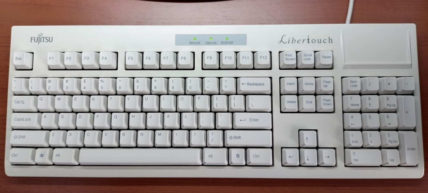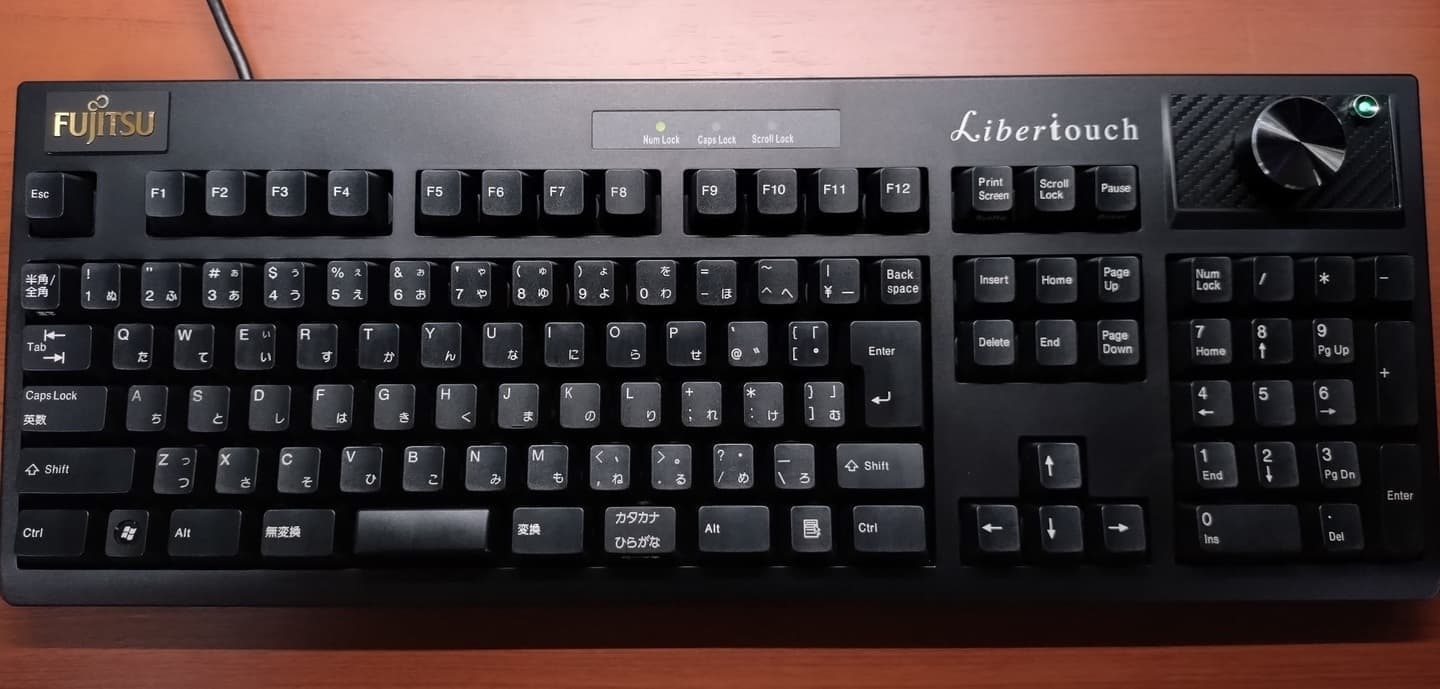 2018年に再版された2モデルのうちの一つで、552/Gのかな表記有モデル。初代モデルとの変更点はラバードームが45g(青)から35g(オレンジ)に変更され、交換用ラバーや保守スプリングが付属しなくなった点。また背面のUSB1.1ポート×も廃止され、純粋な入力デバイスとしての側面が強くなった。また外観上の特徴としてはインジケータ横のLibertouchロゴが廃止され、ライトグレーの筐体と相まってOA機器然とした地味な印象(逆にそこが、富士通らしいとも言える)。